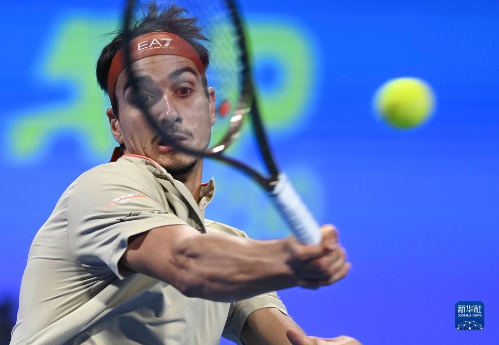 2月20日,索內(nèi)戈在比賽中回球。新華社發(fā)(尼庫攝)