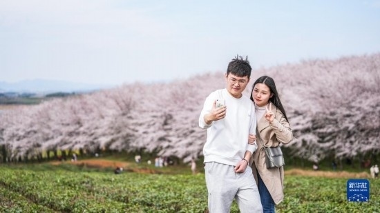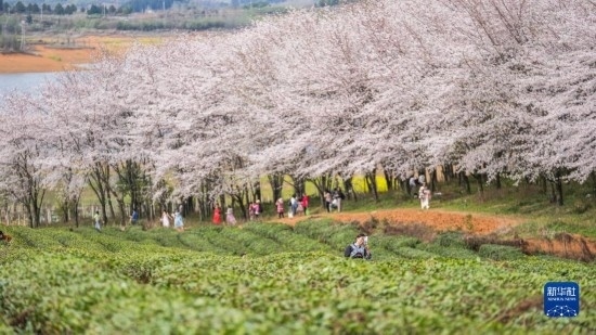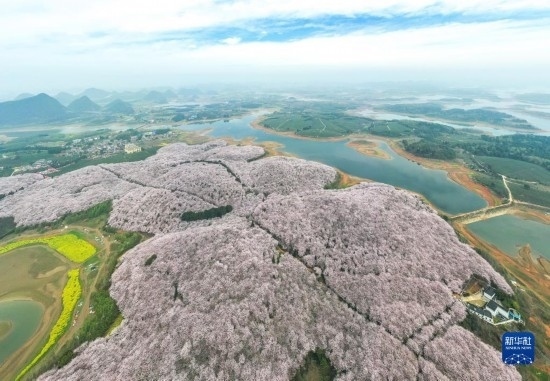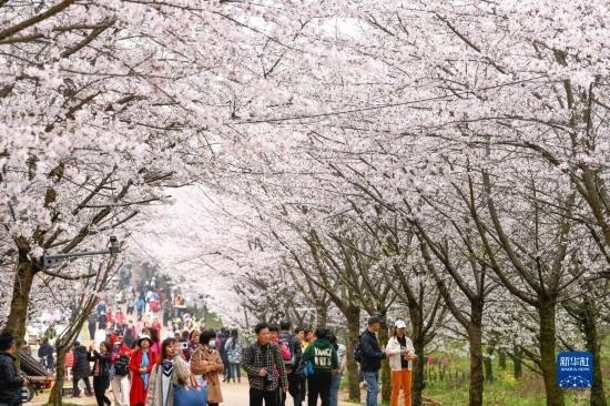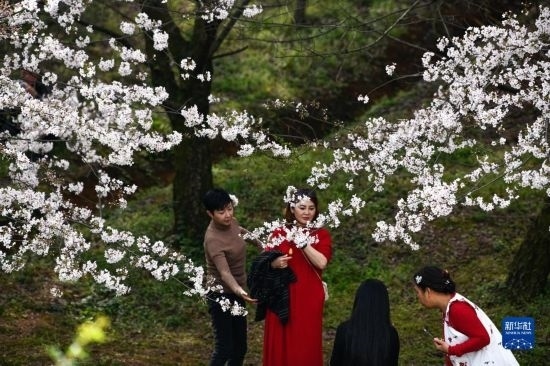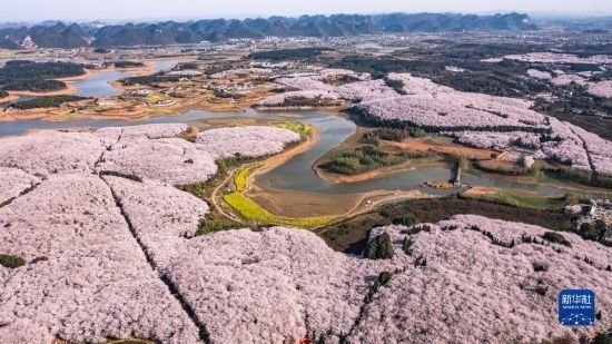 近日,貴州省貴安新區(qū)櫻花園內(nèi)的2.4萬畝櫻花競(jìng)相綻放,如雪似霞,吸引游客前來賞花觀光。