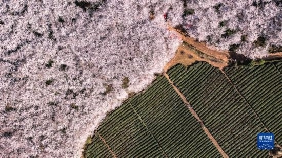 3月21日拍攝的貴州省貴安新區(qū)櫻花園(無人機(jī)照片)。