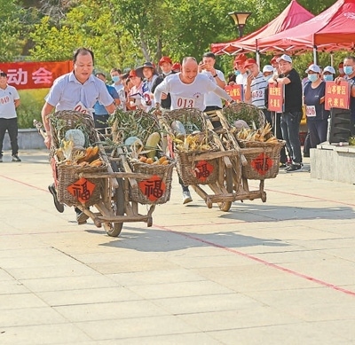 突出“農(nóng)”與“趣”,有效調(diào)動農(nóng)民運動積極性。去年,在四川省成都市新津區(qū)舉辦的全國農(nóng)民體育健身大賽上,參賽的農(nóng)民選手挑著擔子奔跑、抱著草帽中的瓜果追逐、推著手推車比拼……“帶著豐收的喜悅參加活動,運動也變得更有趣?!背啥加兰t農(nóng)機專業(yè)合作社社長劉長洪說。