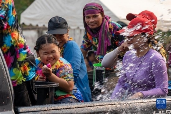 4月13日,泰國(guó)廊開(kāi)的民眾慶祝潑水節(jié)。