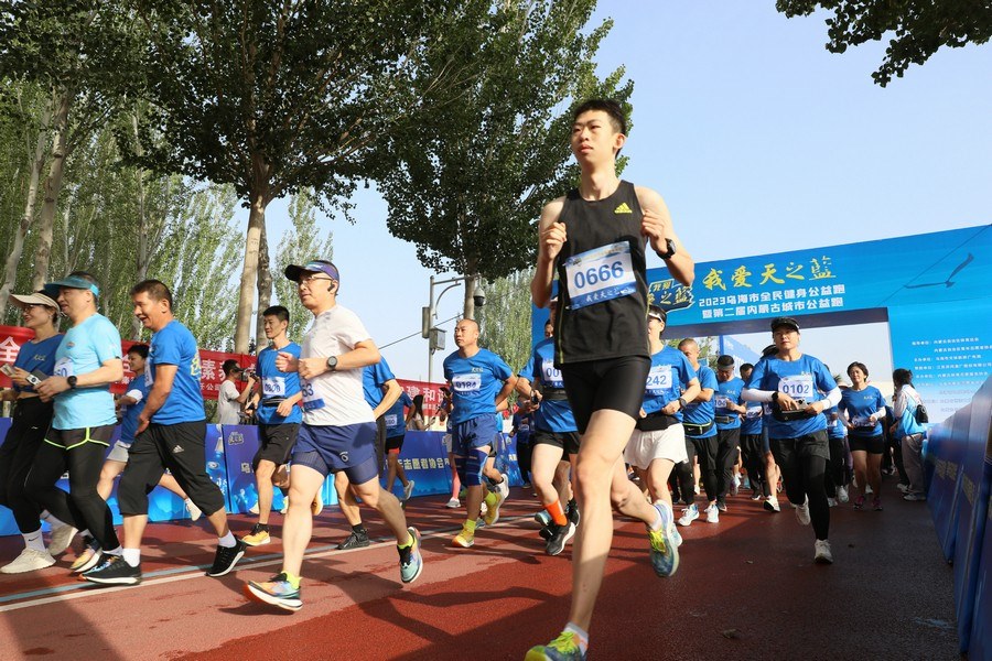 北疆新聞烏海9月19日消息(記者 張楊)9月10日一早,風(fēng)光秀美的烏海湖畔微風(fēng)送爽、薄霧輕漫。2023“我愛(ài)天之藍(lán),健康草原行”第二屆內(nèi)蒙古城市公益跑烏海站活動(dòng),在美麗的“沙漠湖城”啟動(dòng)。本次健身跑全程10公里,選在有“烏海小三亞”美譽(yù)的濱河公園彩色步道上舉行,沿途一步一景,陽(yáng)光草坪、碧水沙灘、音樂(lè)噴泉、童趣雕塑、高架樂(lè)園、森林咖啡小屋、鄭和寶船……與不遠(yuǎn)處的烏海湖遙相呼應(yīng),構(gòu)成一幅水城共融的絕美畫(huà)卷。