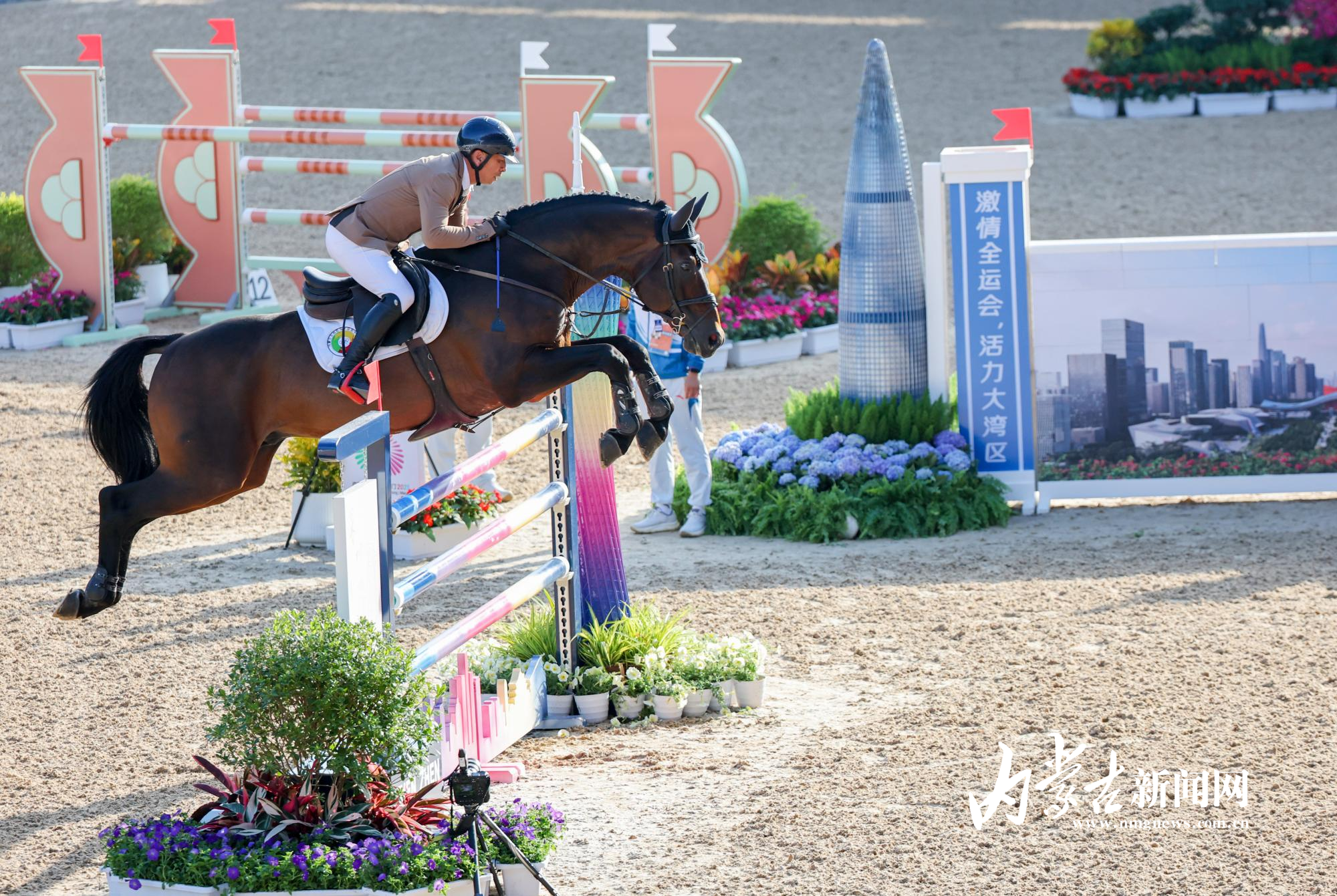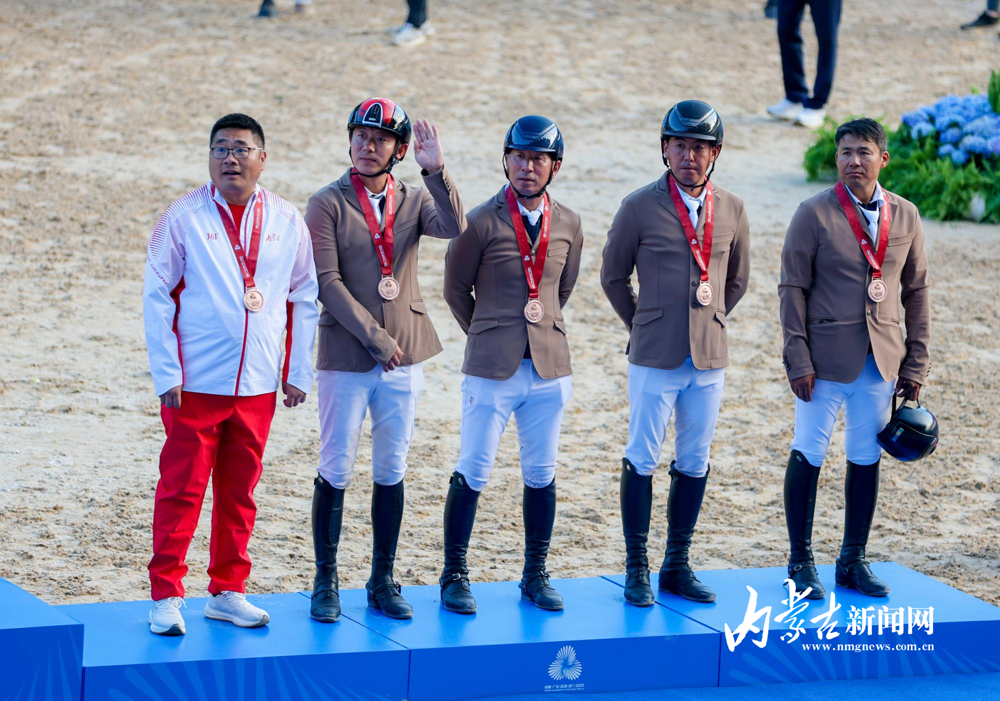 11月17日,第十五屆全國運動會馬術(shù)項目場地障礙團體賽在深圳市光明國際馬術(shù)中心進行,由達日瑪、劉同晏、張睿、韓豐組成的內(nèi)蒙古隊憑借兩輪穩(wěn)定發(fā)揮,以總罰分31分的成績斬獲銅牌。
