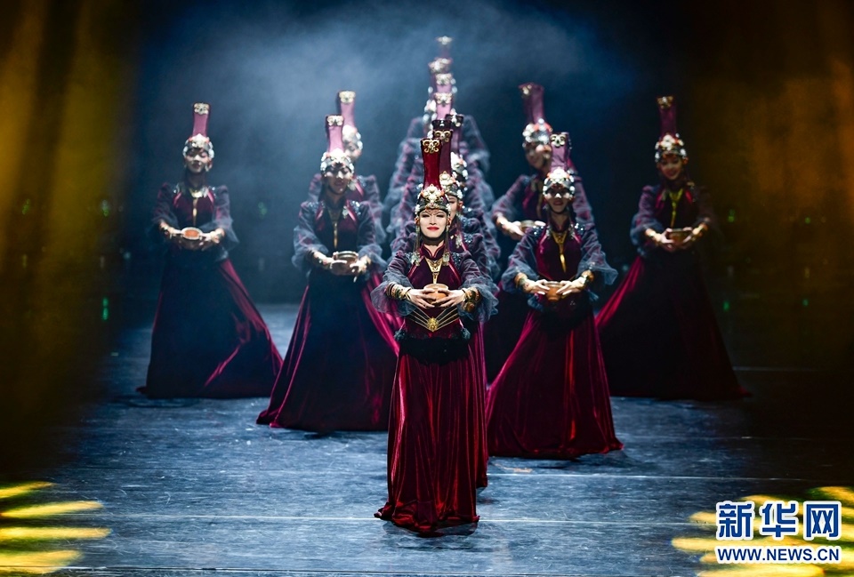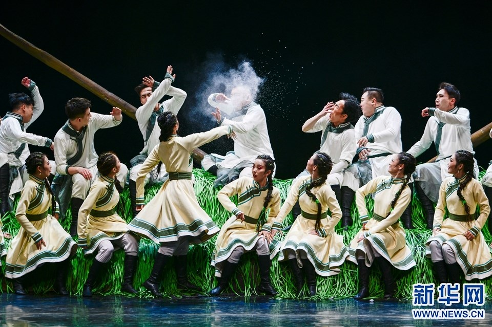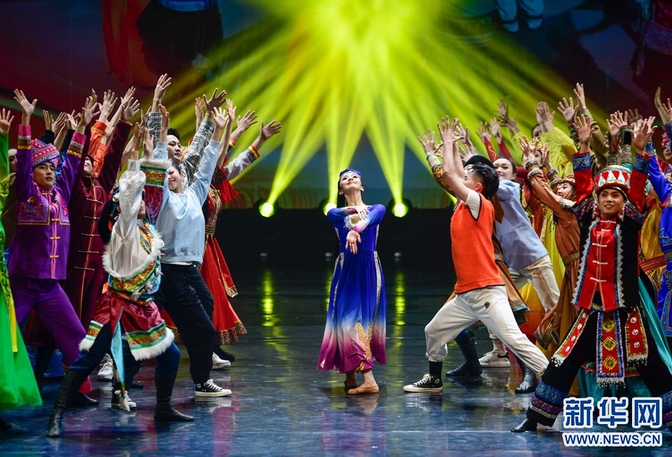1月12日,演員在2022年內(nèi)蒙古新年舞蹈晚會中表演舞蹈《各族兒女行進在陽光里》。新華網(wǎng)發(fā)(王正攝)