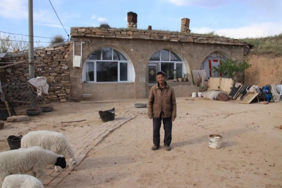 2022年5月15日,呼和浩特市長(zhǎng)城科普學(xué)會(huì)會(huì)員來(lái)到清水河縣城關(guān)鎮(zhèn)銀滾山長(zhǎng)城公園北面的邊墻壕村考察明大邊,在村口聽見狗吠,順著聲音走到邊墻人家門前,一只雞站下來(lái)一直看著你,等你走近的時(shí)候才扭著身子慢慢跑開;你也會(huì)聞到羊糞的味道,它們從大門縫里鉆出來(lái),稀罕地與我們打著招呼。男主人在羊圈里清理羊糞,他抬起頭和我們說(shuō)話,老人耳背,我們連說(shuō)帶比劃才明白:老漢叫呂占全, 今年90歲,老伴叫郝二毛旦 ,81歲,家里只剩老兩口,兒女們都在市里工作。他們二老是邊墻壕村的守護(hù)者,世世代代一直與邊墻為伴。