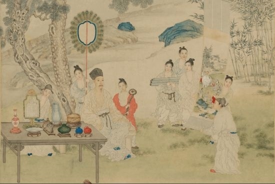 清·郎世寧《弘歷觀畫(huà)圖》軸(局部),展現(xiàn)出乾隆對(duì)古玩字畫(huà)的熱愛(ài)。(圖片來(lái)源:故宮博物院)