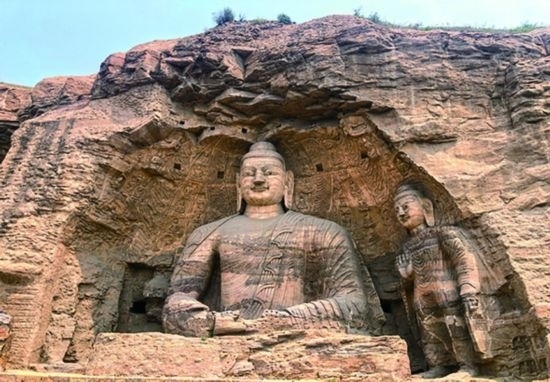 云岡石窟始建于1500多年前,代表了公元5世紀(jì)至6世紀(jì)時中國杰出的佛教石窟藝術(shù)?!霸谠茖咧锌梢悦魑乜吹?,在中國藝術(shù)固有的血脈中忽然滲入旺盛而有力的外來影響?!绷核汲筛锌?。