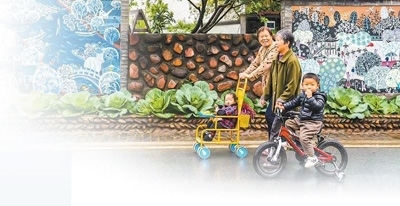 前陣子,村民余春良一家人常到村美術館里找靈感。