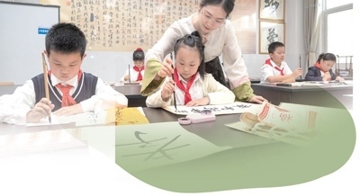 安徽合肥市小學生正在書寫家風家訓。趙 明攝(影像中國)