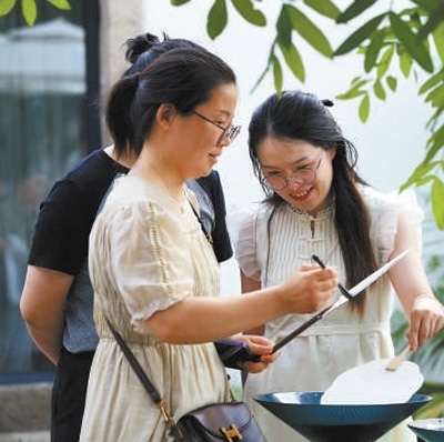 游客在柯橋古鎮(zhèn)體驗(yàn)非遺漆扇制作。以上圖片均為柯橋古鎮(zhèn)保護(hù)中心提供