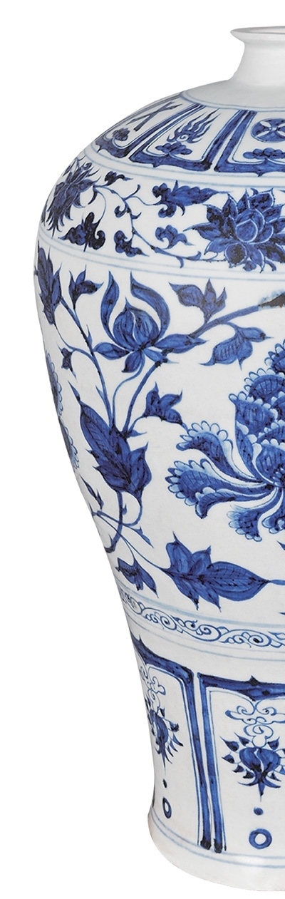 不妨想象:工匠先在坯胎上用青花料繪畫,再施以透明釉,最后在高溫下一次燒成。奇妙的藍(lán)色紋樣隨即浮現(xiàn),色澤鮮麗,有金屬光澤。