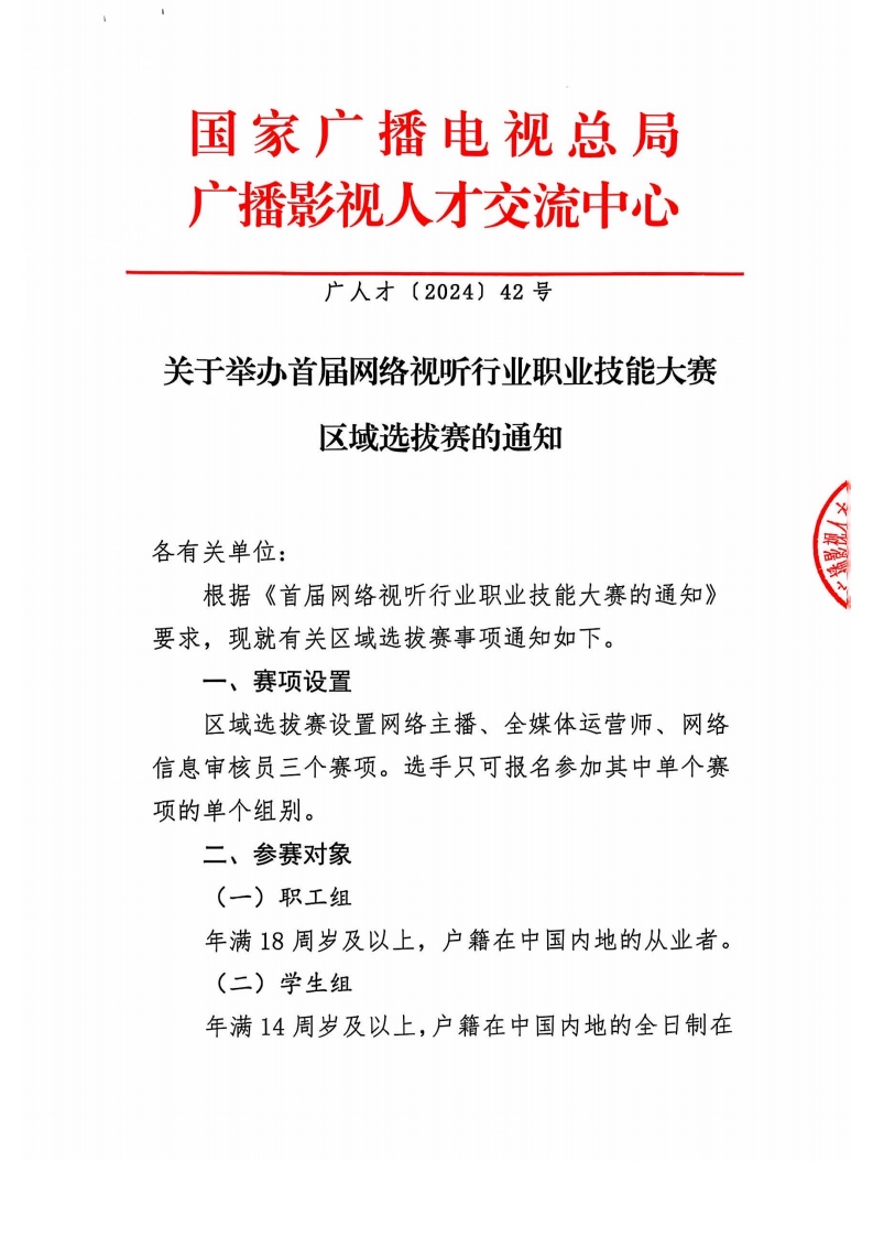 大賽設置網絡主播、全媒體運營師、網絡信息審核員三個賽項,分為區(qū)域選拔賽、全國決賽和頒獎三個階段,從事相關工作的企(事)業(yè)單位職工、自由職業(yè)者及相關專業(yè)全日制在籍學生均可報名參加。