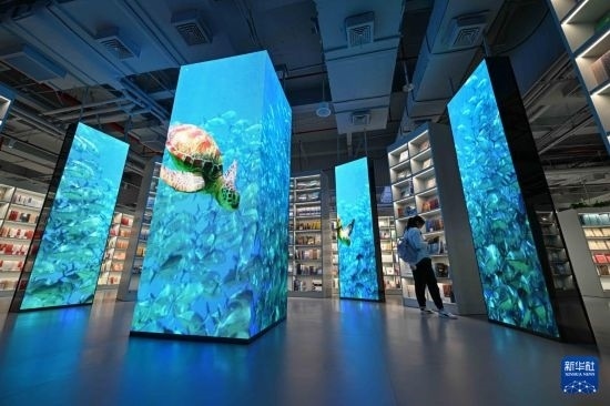 位于海口的新華書店海島書香店結(jié)合海南特色,營(yíng)造熱帶海洋島嶼環(huán)境藝術(shù)空間,成為集閱購、研學(xué)、親子、文創(chuàng)陳展和藝術(shù)交流等功能于一體的開放場(chǎng)所。同時(shí),該店連線各類圖書數(shù)據(jù)庫,為讀者提供海量數(shù)字閱讀產(chǎn)品,滿足讀者文化消費(fèi)需求。