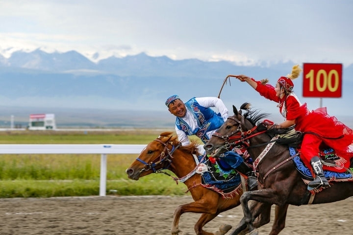 本屆運(yùn)動(dòng)會(huì)的表演項(xiàng)目具有鮮明的地域差異性和民族特色。巍峨雪山、廣袤草原,運(yùn)動(dòng)會(huì)馬上項(xiàng)目的比賽于今年7月在新疆維吾爾自治區(qū)昭蘇縣舉行。其中,“姑娘追”作為表演項(xiàng)目給人留下深刻印象?!肮媚镒贰痹仁枪_克族男女青年的一種戀愛(ài)方式,即姑娘騎馬追上心愛(ài)的青年,用皮鞭輕輕抽打他,來(lái)表達(dá)愛(ài)意?,F(xiàn)如今,在各民族文化的互鑒融通中,“姑娘追”已成為一項(xiàng)饒有風(fēng)趣的群眾性體育活動(dòng),不斷傳承發(fā)展。