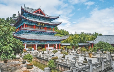“一座土司府,半部民族史”。木府萬卷樓前的這10個字,將邊地古城各民族交往交流交融的故事娓娓道來。獅子山拱衛(wèi)、護城河縈繞,木府的選址與布局十分講究。作為麗江木氏土司府的衙署,木府始建于明代,后來歷經(jīng)多次擴建和修繕,形成了現(xiàn)有的建筑群布局,議事廳、萬卷樓、護法殿等沿中軸線依次排開。歷經(jīng)400多年風雨的木府,作為麗江古城中的重要文化地標,聆聽著各民族百川匯流向前的歷史回響。