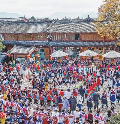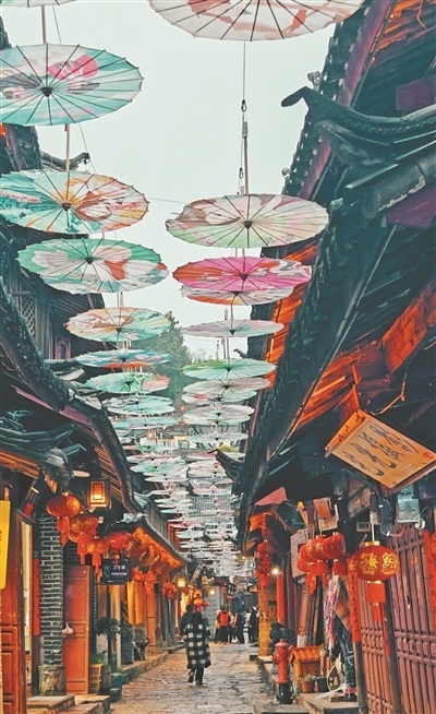 麗江古城涵蓋了作為茶馬古道重鎮(zhèn)的大研古城、從農(nóng)耕文明向商業(yè)文明過渡的“活標本”束河古鎮(zhèn)、有著原生態(tài)納西村落的白沙古鎮(zhèn),融匯了漢族、白族、彝族、藏族、納西族等多民族文化特色。作為一座沒有城墻的古城,麗江古城以包容與開放的姿態(tài),歷經(jīng)文化的交融與碰撞,源源不斷地孕育出充滿魅力的文化新形態(tài)。
