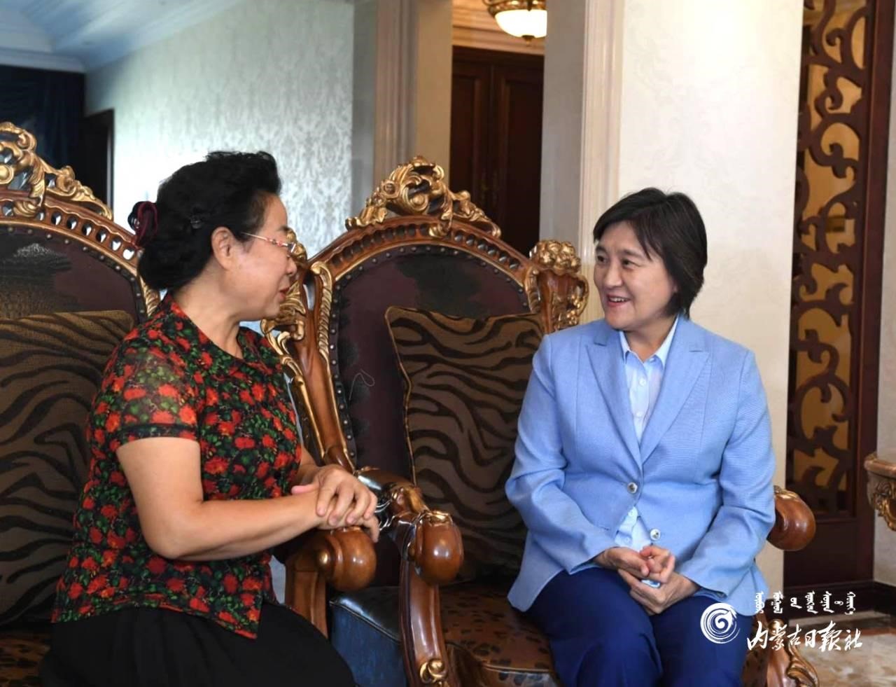 9月10日上午,自治區(qū)黨委副書記、自治區(qū)主席布小林慰問呼和浩特市第二中學退休教師姜超霞(右)。內(nèi)蒙古日報社融媒體記者 韓卿立 攝