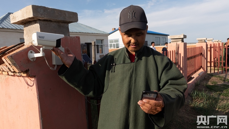 現(xiàn)在很多牧民家門口還多了360度高清攝像頭,蘇尼爾家有3000多畝草場,無論他在哪,點(diǎn)開手機(jī)里一款云視頻app,就可以查看草場的每一個(gè)角落。