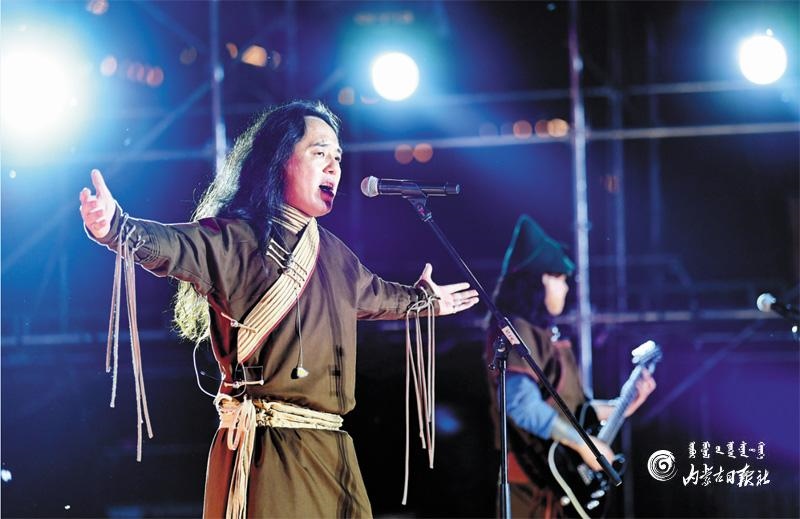 8月16日晚,助演嘉賓藍野樂隊激情獻唱。內(nèi)蒙古日報記者 王磊 懷特烏勒斯 攝