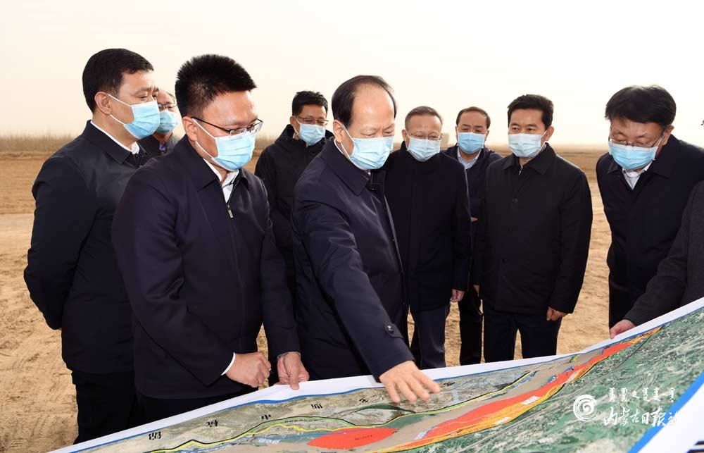 3月16日,自治區(qū)黨委書(shū)記、人大常委會(huì)主任石泰峰來(lái)到巴彥淖爾市臨河區(qū)雙河鎮(zhèn)富河村,察看了解黃河河道整治情況。內(nèi)蒙古日?qǐng)?bào)社融媒體記者袁永紅攝