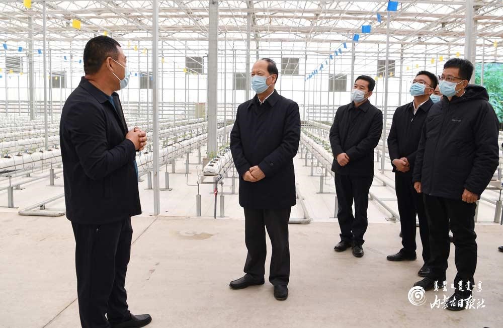 3月16日,自治區(qū)黨委書(shū)記、人大常委會(huì)主任石泰峰來(lái)到巴彥淖爾市臨河區(qū)鮮農(nóng)農(nóng)業(yè)科技園區(qū),走進(jìn)智能聯(lián)棟溫室,了解現(xiàn)代農(nóng)業(yè)運(yùn)營(yíng)情況。內(nèi)蒙古日?qǐng)?bào)社融媒體記者袁永紅攝