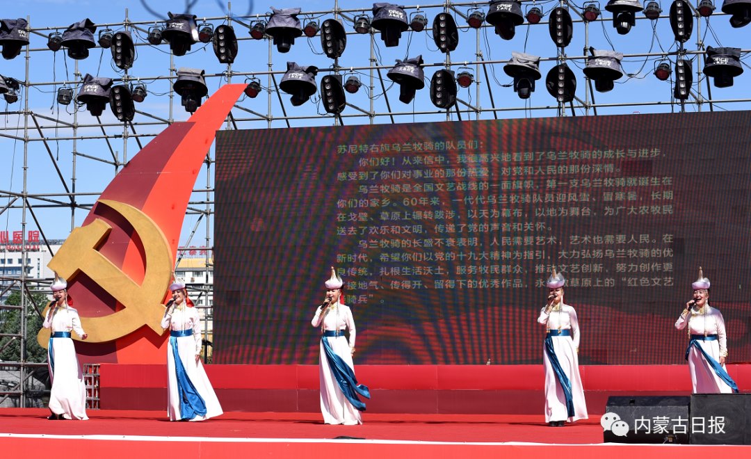 在建黨100周年華誕到來之際,6月17日,自治區(qū)文化和旅游廳主辦的“永遠(yuǎn)跟黨走”——2021年烏蘭牧騎成立日主題活動暨全區(qū)烏蘭牧騎月活動在錫林浩特市啟動。