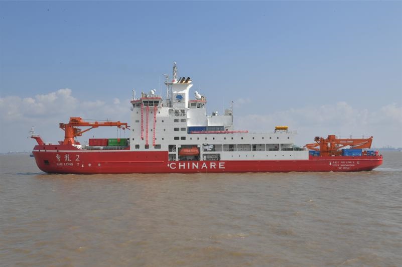 “雪龍2”號總長約122米,寬約22米,設(shè)計排水量近1.4萬噸,續(xù)航力達(dá)到2萬海里,是中國第一艘自主建造的極地科學(xué)考察破冰船,也是世界上首艘具備雙向破冰能力的破冰船。