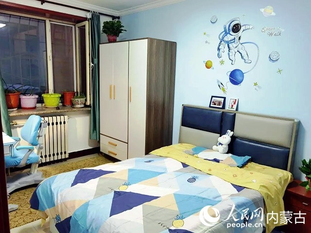 在對(duì)原有住房進(jìn)行規(guī)劃、設(shè)計(jì)后,施工隊(duì)開(kāi)始裝修,并配備必要的家具、臥具和學(xué)習(xí)生活用品。歷時(shí)半個(gè)多月,一間以藍(lán)色為主色調(diào)的小屋建成了?,F(xiàn)在,屬于浩博的那一半臥室,泛黃的臥室墻壁被粉刷成淡藍(lán)色,換了新的小床和衣柜,新添置的書(shū)桌上擺滿了課外書(shū),看起來(lái)整潔又溫馨。