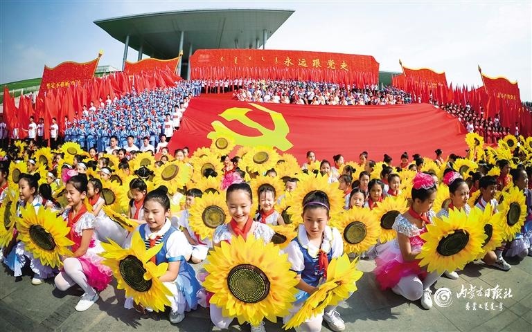 “永遠跟黨走”——慶祝中國共產黨成立100周年內蒙古自治區(qū)(呼和浩特地區(qū))群眾性文化活動在呼和浩特市民族團結寶鼎廣場啟動。內蒙古日報社融媒體記者 王曉博 攝