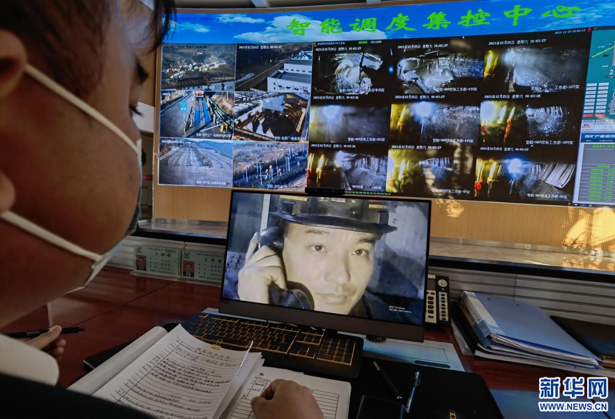 井下工人正在與地上工作人員視頻通話。新華網(wǎng) 楊騰格爾攝