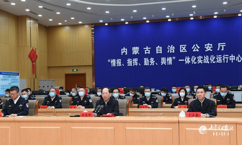 1月31日,自治區(qū)黨委書記、人大常委會主任石泰峰,來到自治區(qū)公安廳一體化實戰(zhàn)運行中心,檢查指導(dǎo)自治區(qū)服務(wù)保障北京冬奧會安保執(zhí)勤工作。內(nèi)蒙古日報社融媒體記者袁永紅攝