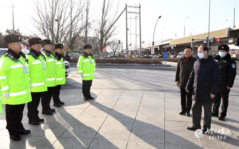 1月31日,自治區(qū)黨委書記、人大常委會主任石泰峰,走訪呼和浩特市公安局交警支隊賽罕大隊九中隊崗?fù)?,看望慰問一線執(zhí)勤交警。內(nèi)蒙古日報社融媒體記者袁永紅攝