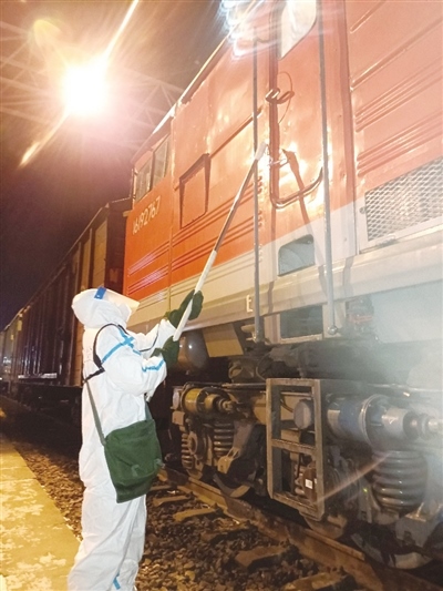 田潤澤告訴記者,“通過‘無接觸’查驗、磁條封控車門,避免了跨境列車司機與邊檢、海關(guān)工作人員的直接接觸,最大限度降低交叉感染的風險,確保司機在國內(nèi)停留的數(shù)小時內(nèi)不下車、不與外界接觸。”