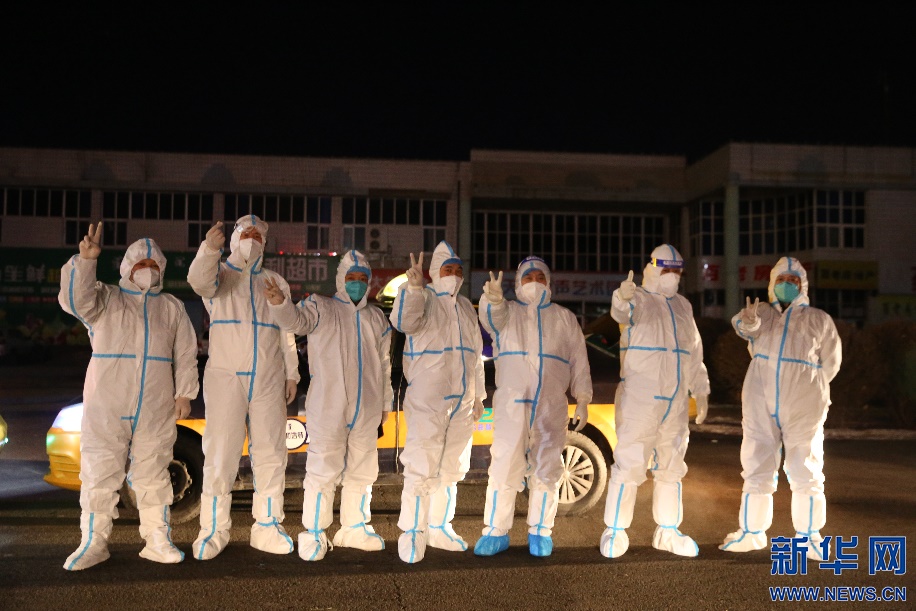 收工之前,現(xiàn)場部分志愿者司機們打出代表勝利的手勢,希望疫情早日散去,青城重現(xiàn)活力。新華網(wǎng)發(fā) 李倩攝