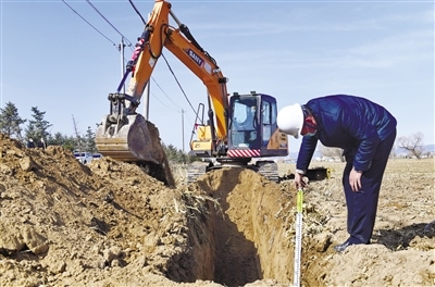 3月21日,工作人員駕駛挖掘機(jī)在呼和浩特市賽罕區(qū)郜獨(dú)利村農(nóng)田里開挖滴灌管道。據(jù)了解,賽罕區(qū)2022年共實(shí)施高標(biāo)準(zhǔn)農(nóng)田建設(shè)項(xiàng)目3.5萬(wàn)畝,總投資6300萬(wàn)元。項(xiàng)目于3月21日全面開工建設(shè),建成后將形成“地平整、土肥沃、旱能灌、澇能排、渠相連、路相通、林成網(wǎng)”的新型高標(biāo)準(zhǔn)農(nóng)田,預(yù)計(jì)糧食畝均增產(chǎn)20%以上,水資源利用率提高30%以上。(王磊攝)