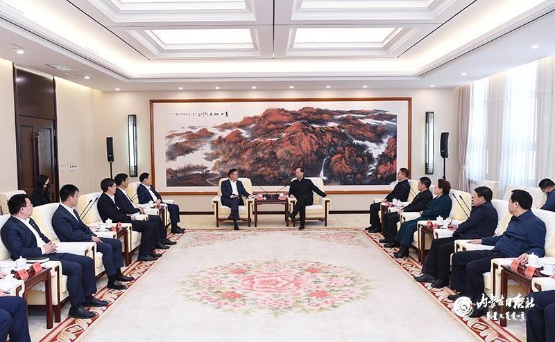 4月7日,自治區(qū)黨委書記、人大常委會(huì)主任石泰峰在呼和浩特會(huì)見TCL集團(tuán)、協(xié)鑫集團(tuán)和中環(huán)半導(dǎo)體企業(yè)負(fù)責(zé)人。內(nèi)蒙古日報(bào)社融媒體記者 袁永紅 攝