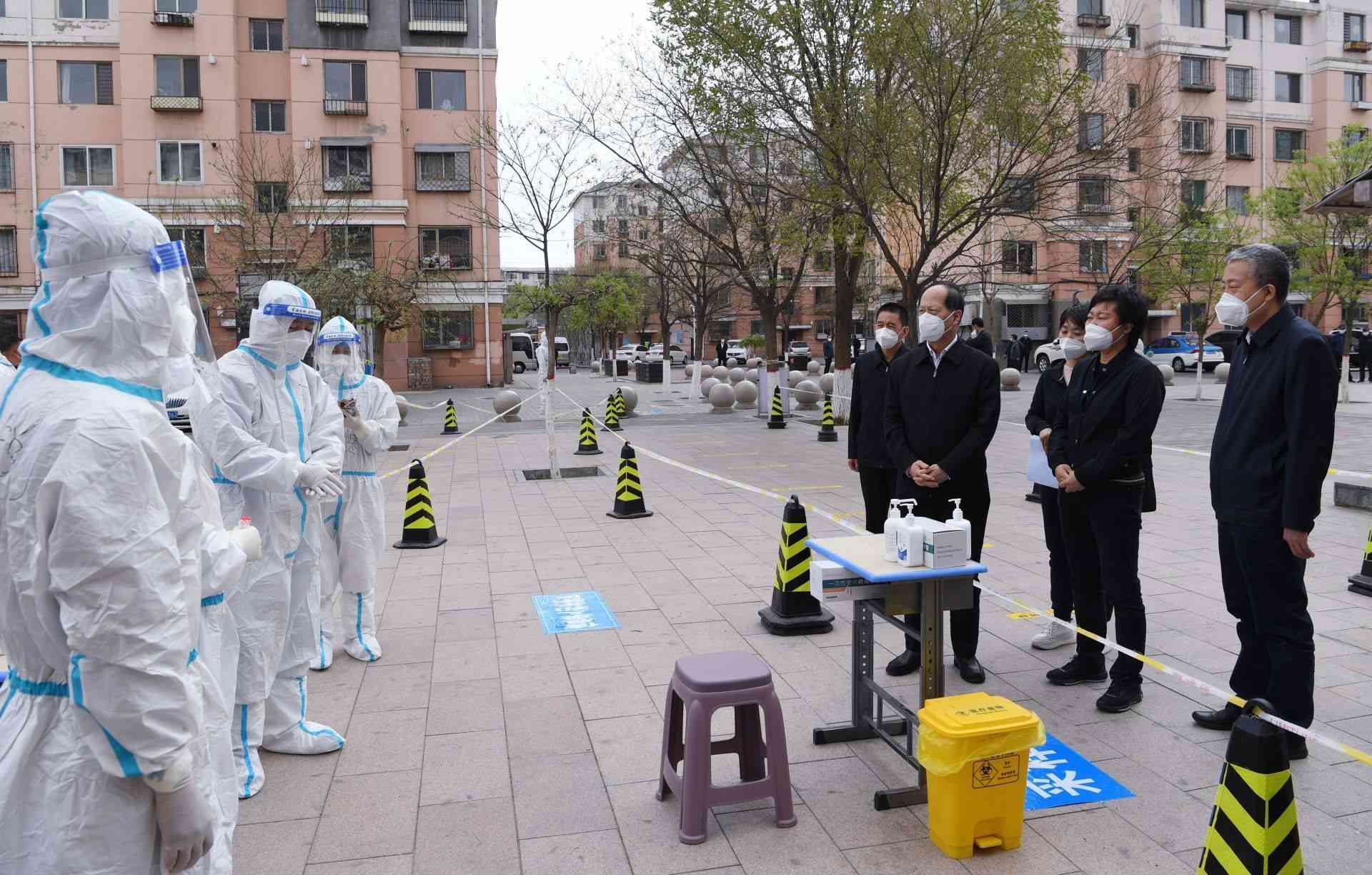4月26日,自治區(qū)黨委書記、人大常委會(huì)主任石泰峰來(lái)到包頭市九原區(qū)龍?jiān)沸^(qū)B區(qū),了解疫情防控封控情況。內(nèi)蒙古日?qǐng)?bào)社融媒體記者 袁永紅攝