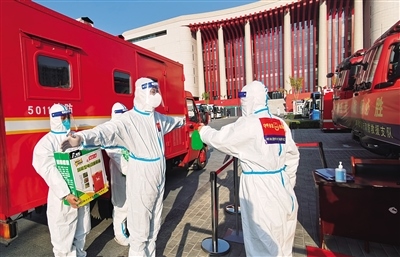 10月20日,在內(nèi)蒙古革命歷史博物館方艙醫(yī)院,呼和浩特市消防救援支隊(duì)消防員正在做個(gè)人消殺。本輪疫情發(fā)生以來,該支隊(duì)累計(jì)執(zhí)行消毒消殺任務(wù)300余次,完成室內(nèi)消殺近15萬平方米、消防安全線上檢查指導(dǎo)近500(家)次,為疫情防控貢獻(xiàn)消防力量。(內(nèi)蒙古日?qǐng)?bào)社融媒體記者記者 懷特烏勒斯 通訊員 隆雪 攝)
