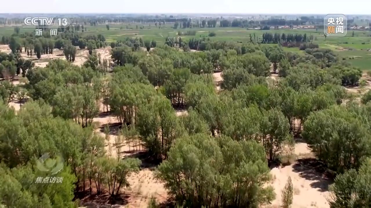 風沙大是過去紅旗村村民們最憂心的事兒。如今,村民們之所以能夠踏踏實實種地,是因為不遠處的巴彥淖爾市國營新華林場種下的這些郁郁蔥蔥的防風固沙林,這些樹木成了農田的“防風防沙墻”。
