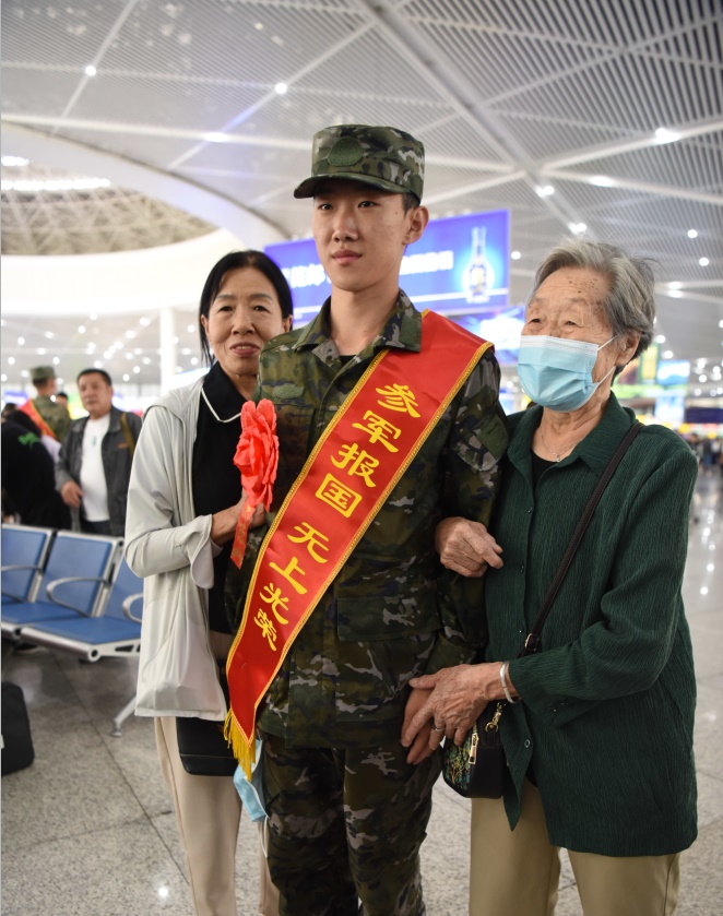 在新兵歡送現(xiàn)場,一位83歲高齡的老人田粉仙送外孫出征,這一幕讓在場的人感動不已。老人告訴筆者:“老伴就是軍人,家里好幾個子女也都當過兵,希望外孫也能向家人學習,到部隊要好好干,聽黨的話,為國家出力......” 姥姥樸實的話語寄托著對外孫深情的希望與殷切的期盼。