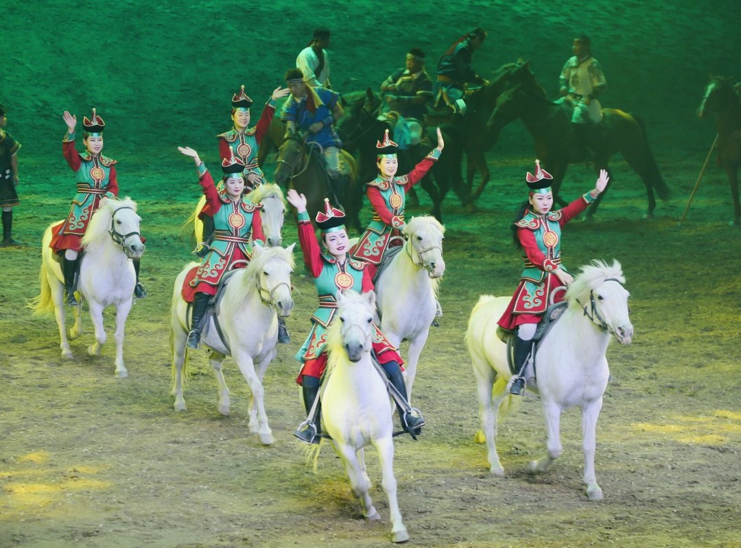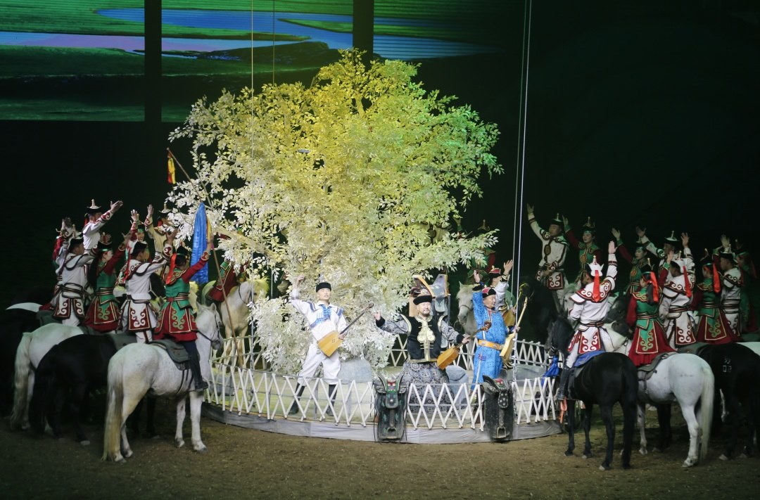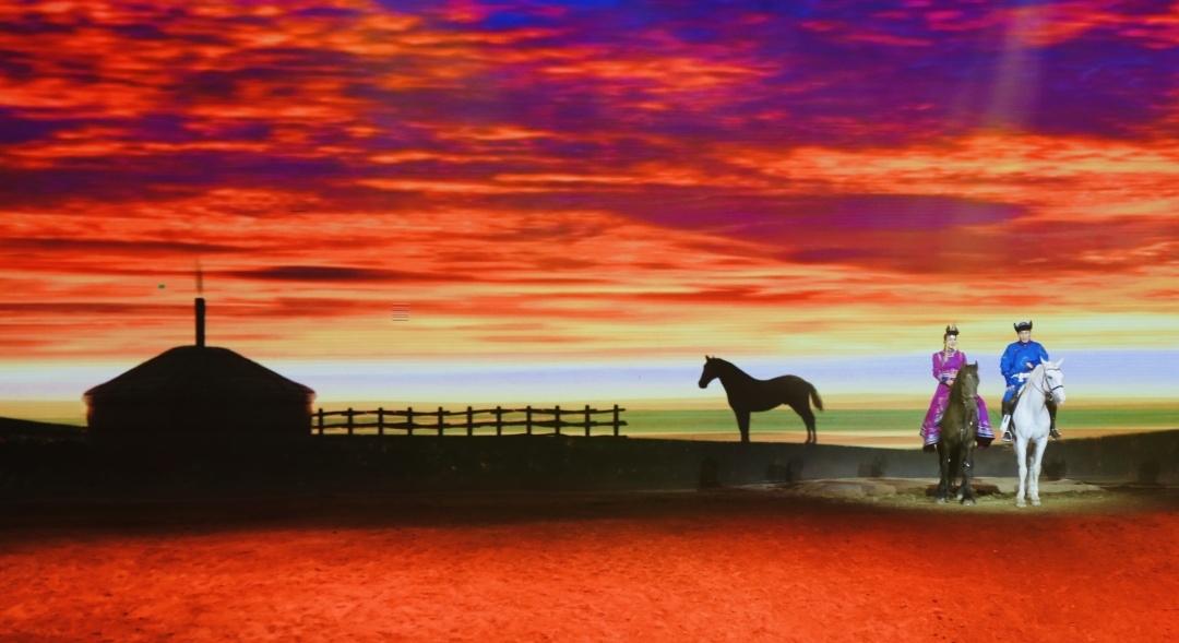 《千古馬頌》既具奪人眼球的觀賞性,又有直指人心的文化內(nèi)涵;既是一項(xiàng)填補(bǔ)內(nèi)蒙古馬文化駐場演出空白的旅游產(chǎn)品,又是一部挖掘蒙古民族與馬深厚情感的藝術(shù)史詩,成為近年來提升內(nèi)蒙古自治區(qū)文化產(chǎn)業(yè)核心競爭力、展現(xiàn)民族融合團(tuán)結(jié)奮斗的一部優(yōu)秀作品。(攝影/內(nèi)蒙古日報(bào)·草原全媒記者郭偉偉)
