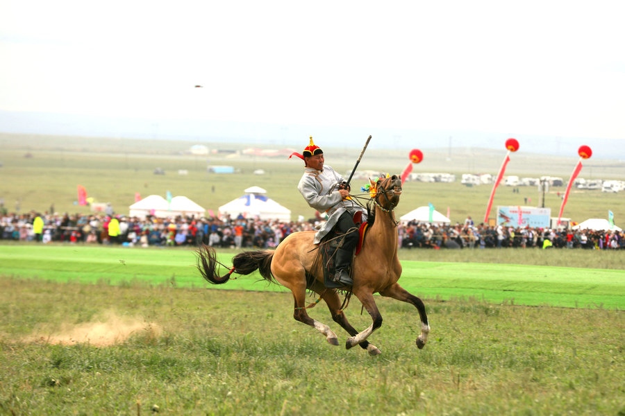 7月23日,“相約草原·遇見那達(dá)慕”內(nèi)蒙古自治區(qū)第33屆旅游那達(dá)慕在錫林郭勒盟錫林浩特開幕。當(dāng)天,近10萬名觀眾和演職人員歡聚于此,載歌載舞,共慶草原盛會。