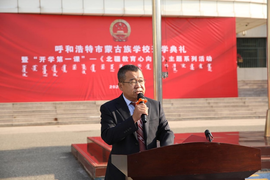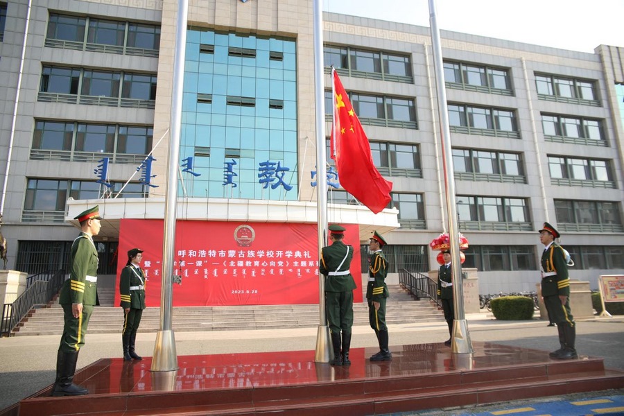 呼和浩特市蒙古族學校開展了主題為“北疆教育心向黨”開學第一課系列活動。全校2900多名師生參加。102名黨員、干部重溫入黨誓詞,在黨旗下再次接受革命精神的凈化和洗禮。同時,各班級開展了“青春踐行黨的二十大”為主題的班會活動,各班班主任結合專業(yè)特色和學生實際,叮囑學生要提高思想政治素質,堅定理想信念,助力學生成長成才。