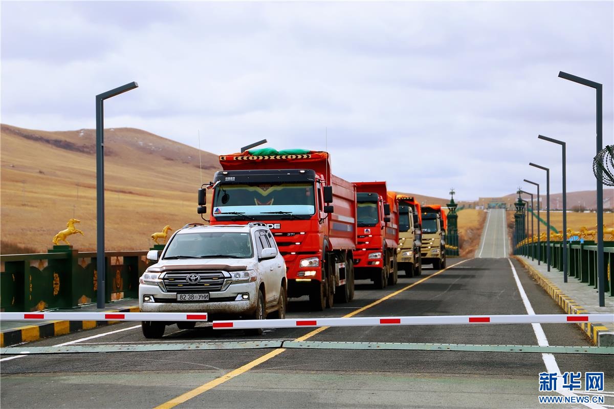 大卡車(chē)駛過(guò)珠恩嘎達(dá)布其口岸。資料圖 ??