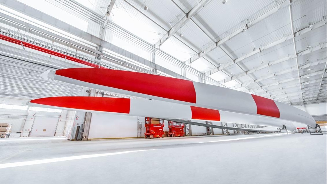 遠(yuǎn)景北方(烏蘭察布)能源有限公司剛剛生產(chǎn)出的葉片。
