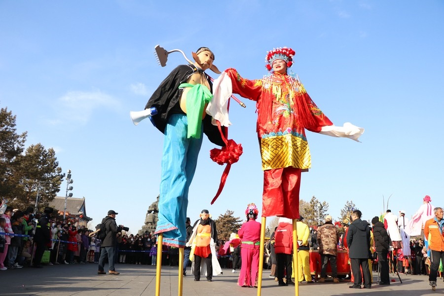 現(xiàn)場人潮涌動,歡聲笑語此起彼伏。扭秧歌隊(duì)伍身著色彩斑斕的服裝,手持彩扇,隨著歡快的音樂節(jié)奏,邁出輕盈的步伐,每一個(gè)動作都充滿了力量感和韻律感。他們的表情歡快,笑容燦爛,將歡樂傳遞給每一位觀眾。與此同時(shí),踩高蹺也吸引了眾多觀眾的目光。演員們踩著高高的木蹺,身著華麗的戲服,扮演著各種角色,自如地行走、跳躍,引得觀眾陣陣喝彩。