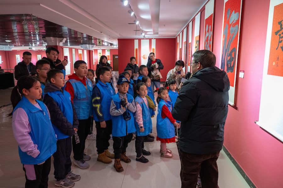活動現(xiàn)場,20余名小朋友在家長的陪同下,參觀了“藝美北疆 遇見青城”——呼和浩特市百福迎春賀歲作品展”和“藝美北疆 新春納?!薄厣夏?nbsp;水墨集中國書畫名家邀請展,小朋友在呼和浩特美術(shù)館老師的講解下,了解了春節(jié)貼“?!弊质俏覈耖g由來已久的風(fēng)俗,“?!蔽幕侵腥A優(yōu)秀傳統(tǒng)文化的組成部分,激發(fā)了小朋友們對傳統(tǒng)文化的熱愛。