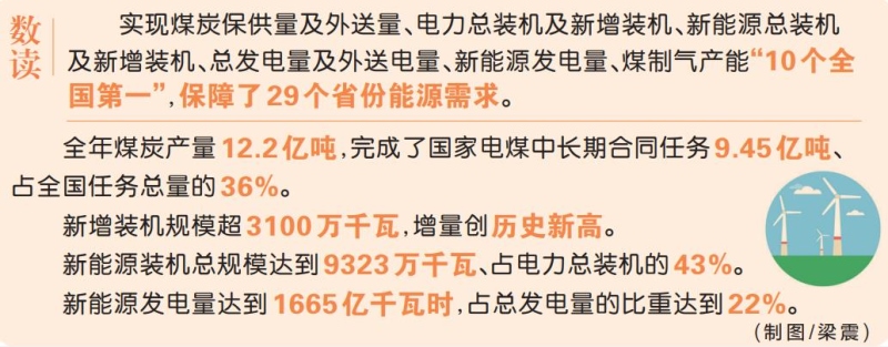 這一年,內(nèi)蒙古堅決服從服務國家大局,全力抓好能源穩(wěn)產(chǎn)保供。全年煤炭產(chǎn)量12.2億噸,完成了國家電煤中長期合同任務9.45億噸、占全國任務總量的36%,外送煤炭7.2億噸、外送電量3065億千瓦時。