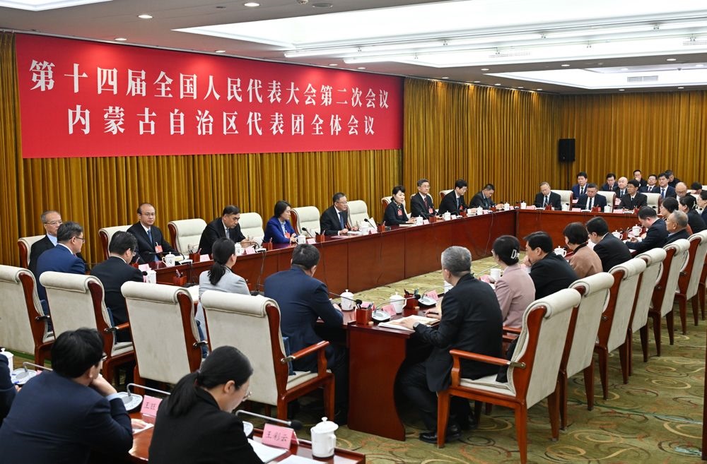 3月3日,出席十四屆全國人大二次會議的內(nèi)蒙古代表團在駐地召開全體會議。草原全媒記者 馬建荃 攝