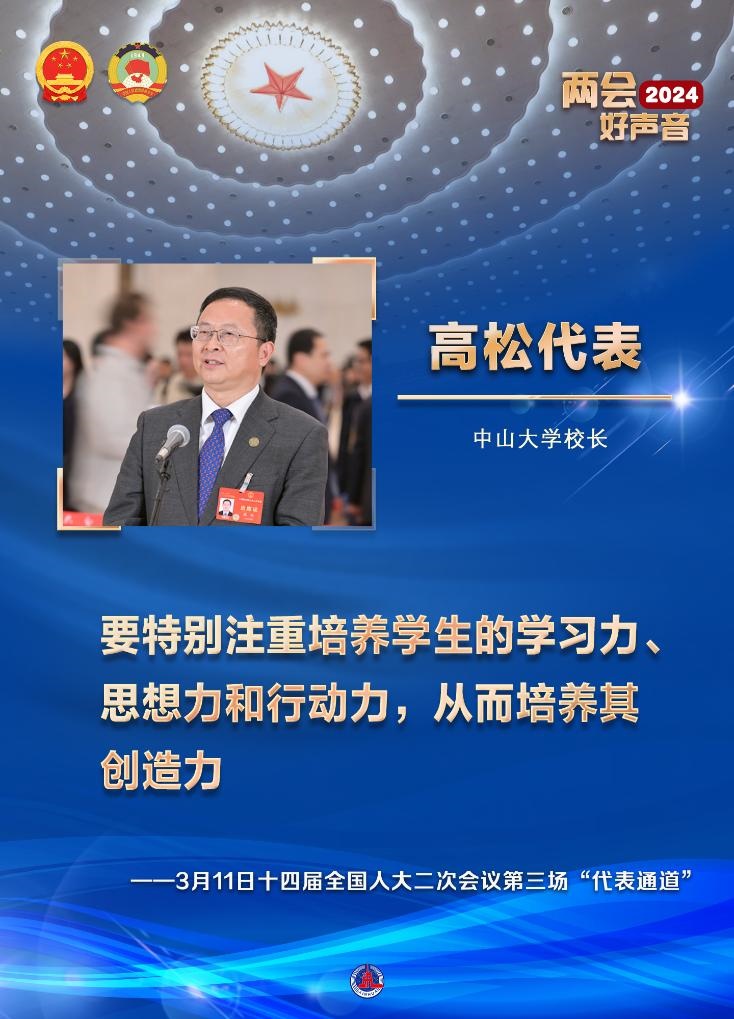 青年人是未來(lái)創(chuàng)新的希望。對(duì)于如何培養(yǎng)學(xué)生的創(chuàng)造力,中山大學(xué)校長(zhǎng)高松代表給出了他的答案:要特別注重培養(yǎng)學(xué)生的學(xué)習(xí)力、思想力和行動(dòng)力,從而培養(yǎng)其創(chuàng)造力。